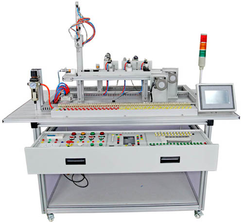 光機電一體化實訓考核裝置由由鋁合金導軌式實訓臺、典型的機電一體化設備的機械部件、 PLC 模塊、變頻器模塊、按鈕模塊、電源模塊、模擬生產設備實訓模塊、接線端子排和各種傳感器、計算機等組成。整體結構采用開放式和拆裝式,實訓裝置用于機械部件組裝,可根據現有的機械部件組裝生產設備,也可添加機械部件組裝其他生產設備,使整個裝置能夠靈活的按教學或競賽要求組裝具有生產功能的機電一體化設備。模塊采用標準結構和抽屜式模塊放置架,互換性強;按具有生產性功能和整合學習功能的原則確定模塊內容,使教學或競賽時可方便的選擇需要的模塊。設備需完全符合電工 電子全國職業(yè)技能大賽所要求,同時還要求具有可拓展功能,可以組成更加大型的生產模擬系統(tǒng),以配合各個用戶學校不同層次,不同專業(yè)的教學及培訓要求。
