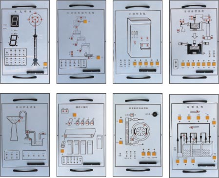 配合 PLC 可編程控制器實(shí)驗(yàn)臺(tái)使用而設(shè)計(jì)的外接演示裝置。它由 LED 發(fā)光二極管、大型 LED 數(shù)碼管、直流電機(jī)、步進(jìn)電機(jī)等執(zhí)行機(jī)構(gòu)用其他外圍電路模擬實(shí)際工業(yè)控制過程中的狀態(tài),它形象生動(dòng)的演示了 PLC 的整個(gè)執(zhí)行過程。通過該裝置,可以鍛煉學(xué)生的動(dòng)手能力,能夠形象生動(dòng)的執(zhí)行機(jī)構(gòu)驗(yàn)證自己編寫程序的正確性,掌握 PLC 的實(shí)際應(yīng)用,增強(qiáng)學(xué)生對 PLC 的學(xué)習(xí)興趣。該裝置在演示屏上位置可任意移動(dòng)、互換。
