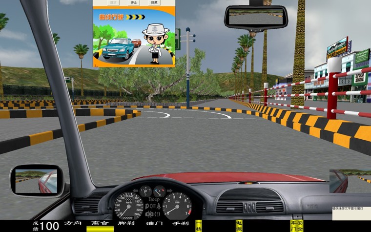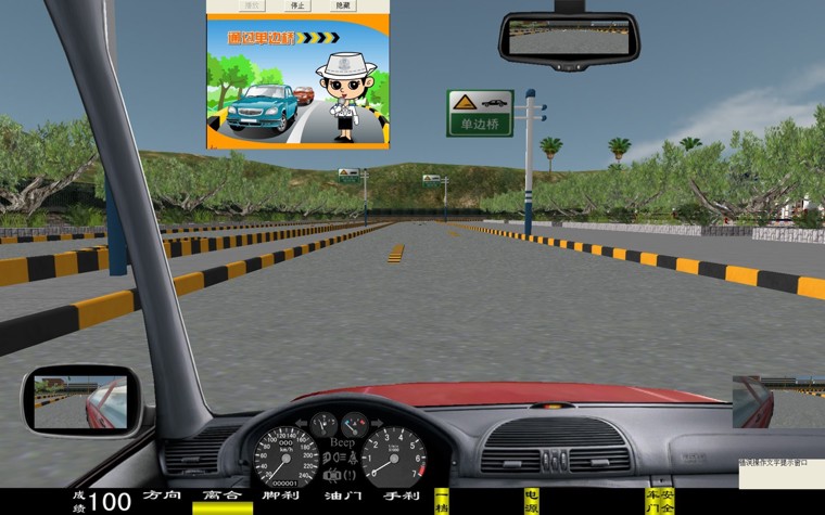華育寬頻 HYM-9 型汽車駕駛模擬器是一種 80 度視角配 22 寸液晶彩顯的多功能新一代的主被動式汽車駕駛模擬器。它突破了原來在行駛十字路口向左拐的視線盲區(qū),行起車來更加方便逼真, 從而清楚的觀察車輛與路面的位置關(guān)系。是目前市場上絕對最新版的汽車駕駛模擬器軟件。 一、界面顯示 新增加 有: 轉(zhuǎn)向、 油門、 剎車、 離合器深淺進度; 檔位、 訓練成績, 后視鏡(左、右、中)、 場景地圖顯示; 界面儀表盤上顯示有: 車速表、 發(fā)動機轉(zhuǎn)速表、 大燈、(遠光燈、近光燈、視寬燈)、 轉(zhuǎn)向燈、 安全帶提示燈、 車門關(guān)閉提示燈、 機油燈、 電瓶警告燈等。 在訓練過程中、通過雙擊鼠標、可實現(xiàn)正視和俯視圖像駕駛之間切換。 三、本模擬系統(tǒng)界面里不同車型之間自由轉(zhuǎn)換,其車型有: 小轎車、 吉普車、 無級變速車(自動檔)、 農(nóng)用車、 大貨車、 大客車、 (車型等多達六種學員可以在模擬器上體會不同車型的駕駛體會與樂趣) 四、學員可以根據(jù)自己駕駛的熟練程度選項訓練,分三級訓練,即 1 、初級駕駛; 2 、中級駕駛; 3 、高級駕駛訓練: 初級駕駛訓練 :初級駕駛可分為六種車型和三種練習方法,即 1 、被動駕駛; 2 、原地訓練; 3 、簡易道路等訓練 中級駕駛訓練 :可選擇場景內(nèi)的相應(yīng)功能訓練:車輛的數(shù)量、車型、道路、天氣等。 高級駕駛訓練 :可選車輛的數(shù)量、車型、道路、天氣及 交通部規(guī)定的九項專項訓練 即: 1 通過連續(xù)障礙、 2 通過單邊橋、 3 直角轉(zhuǎn)彎、 4 側(cè)方位停車、 5 上坡定點停車與坡道起步、 6 限速通過限寬門、 7 百米 加減檔、 8 起伏路駕駛、 9 曲線行駛等 。場景內(nèi)最多可達 60 輛其他車輛,達到模擬逼真的交通流狀況。 訓練氣候 面有:“