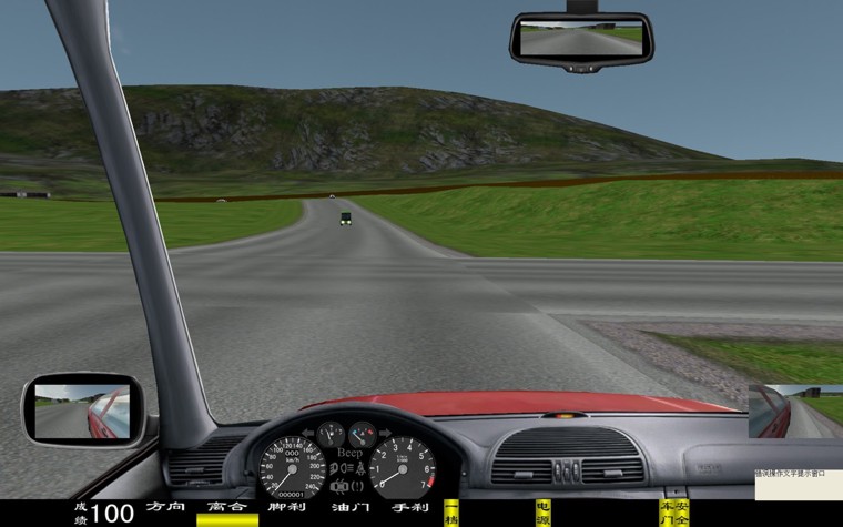 炫目訓練” “白天”、“雪天”、“霧天”、“雨天”、“黑夜”,體會不同天氣狀況下的駕駛特點(例如,晴天炫目道路訓練有早上及傍晚的炫目駕駛;雪天路面極滑;霧天視線極其不好;夜間駕駛會車時要遠近燈光的切換等)。 學生駕駛艙 座機由駕駛座、視屏彩電、汽車五大操作系統(tǒng)、核心計算機、高級進口傳感器、數(shù)據(jù)采集板等組成,各操作部件通過傳感器,經(jīng)數(shù)據(jù)傳感板傳輸。 駕駛模式 被動式:被動式駕駛適用于初學的學員,學生可以按照電腦語音提示進行規(guī)范的操作練習。 主動式:主動式駕駛與實際車輛相同。 功能 主視屏:顯示駕駛前方道路與周圍路況、使學生能感覺身在駕駛室操作著運行中的汽車。并顯示檔位、成績分數(shù)。 后視鏡:能達到與真車相同的模擬效果。可升降。 模擬儀表:顯示車速、里程、發(fā)動機轉(zhuǎn)速。并且可自行決定關(guān)閉或開啟。 特殊功能:通過鼠標操作可由正常駕駛室駕駛模式切換到以府視式駕駛模擬 . 訓練場景科目: ⑴ 一般道路; ⑵ 高速公路; ⑶ 城市道路;(包括:行人、自行車、其它車輛、雙黃線、崗?fù)、警察、紅綠燈、轉(zhuǎn)盤、交通標志標線等。) ( 4 )炫目道路 ( 5 )泥濘道路 ( 6 ) 山區(qū)道路; ( 7 ) 曲線穿樁、場地倒庫; ( 8 )“ 8 ”字型路; ( 9 ) 直角彎路、十字路口、丁字路口、匝道等。 ( 10 ) 蛇形路; ( 11 ) 就位停車; ( 12 ) 順行停車; ( 13 )雙邊橋; ( 14 )單邊橋; ( 15 )單凸橋; ( 16 )橫斷橋; ( 17 )騎越障礙; ( 18 )立交橋; ( 19 )隧道。 天氣 一般道路可選擇四種天氣:白天、雪天、霧天、雨天、黑夜。 畫面選擇 可以選擇“打開”或“關(guān)閉”:后視鏡、向?qū)У貓D、錯誤提示、成績等。 其它車輛選擇 各道路分 4 種數(shù)目選擇: 3 至 60 輛。 車型選擇 在訓練中有六種車型:小轎車、吉普車、無級變速車(自動檔)、大貨車、大客車、農(nóng)用車等。 汽車模擬技術(shù) 汽車多自由度數(shù)學模型,實現(xiàn)汽車轉(zhuǎn)向、制動和加速的逼真模擬。 測試調(diào)整功能 傳感器測試:方向機的測試、離合器的測試、油門的測試、制動器的測試(腳剎)、手制動的測試、變速器各檔位的測試、鳴號、點火、開鎖。只要打開測試界面便一目了然。并可作學員操作曲線學仿 第二節(jié) 汽車駕駛模擬器軟件技術(shù)指標 ● 軟件增加 ※界面儀表盤上顯示有: 車速表、發(fā)動機轉(zhuǎn)速表、大燈、(遠光燈、近光燈、視寬燈)、轉(zhuǎn)向燈、安全帶提示燈、車門關(guān)閉提示燈、警告燈及機油電瓶燈等 , 與硬件配合,錯誤操作進行扣分并具有語音提示。 ※界面顯示新增加: 80 度全新視角寬頻模擬駕駛、轉(zhuǎn)向、油門、剎車、離合器深淺進度顯示;檔位、訓練成績,后視鏡(左、右、中)、場景地圖顯示 ; 與硬件配合。 ※語言提示新增加: 壓雙黃線,闖紅燈提示;并在每次駕駛訓練后系統(tǒng)自動給予評分即“成績優(yōu)秀”“成績中等”“成績不合格”的提示音及字幕。 汽車駕駛模擬器駕駛模擬軟件采用汽車多自由度數(shù)學模型,實現(xiàn)汽車轉(zhuǎn)向、制動和加速的逼真模擬;另外利用最新的計算機技術(shù),實現(xiàn)真實的三維場景及逼真的聲音模擬。 1 駕駛模式選擇 單機訓練:單臺駕駛艙獨立訓練,訓練時候場景內(nèi)部的其他車輛、自行車、行人等由系統(tǒng)根據(jù)交通規(guī)則及交通模型發(fā)出,模擬真實的交車、會車、跟車等。 被動駕駛:系統(tǒng)根據(jù)已經(jīng)配置好的被動駕駛文件播放視頻以及操作語音提示, 學員可以在沒有教練指導下按照操作語音提示學習,學習正確的操作順序。被動駕駛文件可以自行配置,以便根據(jù)自己的特點配置出符合訓練大綱要求的被動駕駛文件。被動駕駛功能對初學駕駛的學員來說非常有用,如果學員沒有按照提示操作,系統(tǒng)將報錯并扣分。 網(wǎng)絡(luò)互動:通過中央控制臺可以最多連接 25 臺駕駛艙,實現(xiàn)聯(lián)網(wǎng)訓練,場景中可以看見其他駕駛艙所駕駛的車輛,并看見其他駕駛艙所駕車輛的轉(zhuǎn)向燈、剎車燈以及聽見其他車輛的喇叭。 2 訓練場景科目 訓練場景包括: 一般道路 :場景中有鐵道路口、單行道、限定距離換檔等內(nèi)容。 高速公路 :場景中有超車道、行車道、出口等交通標志牌,車距確認、隧道、高速公路出入口等內(nèi)容。 城市道路 :場景中有立交橋、十字路口、丁字路口、環(huán)形島、環(huán)城路、行人橫穿道路等內(nèi)容。 炫目道路: 使學員在晴天強光照耀下體會行駛中車距的確認、會車觀察車輛與來車的位置關(guān)系、行人橫穿道路等訓練項目。 危險道路 :危險場景中設(shè)置有行人突然橫穿公路、路口突然出現(xiàn)橫穿自行車、路口突然出現(xiàn)汽車、道路維修等危險狀況。 場地訓練 :曲線穿樁、倒車移位、 “ 8 ”字型路、直角彎路、蛇行路、就位停車、順心停車、斜位停車、雙邊橋、右單邊橋、左單邊橋、單凸橋、雙凸橋、橫斷路、騎越障礙、山區(qū)道路、坡道。 場地 9 項 :通過連續(xù)障礙、通過單邊橋、直角轉(zhuǎn)彎、側(cè)方位停車、上坡定點停車與坡道起步、限速通過限寬門、百米加減檔、起伏路駕駛、曲線行駛。 3 訓練天氣選擇 學員可以選擇“白天”、“雪天”、“霧天”、“雨天”及“黑夜”,體會不同天氣狀況