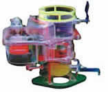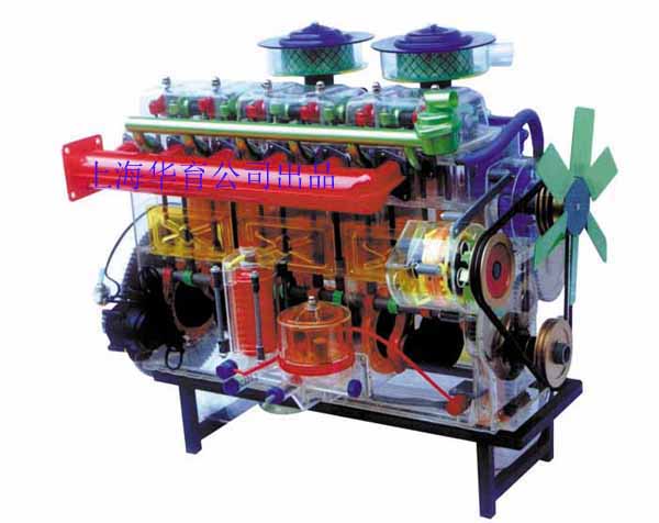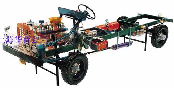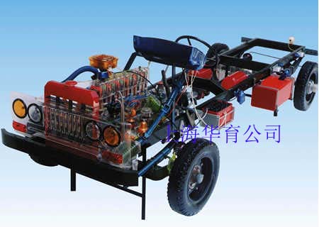 本品選用透明有機玻璃制作,內(nèi)中部件均以硬質(zhì)塑料料加工,用 螺絲固定在金屬高溫烘漆而成的車架上。各總成部分都以壓模成形加 工,代替過去膠粘合的方法,使產(chǎn)品在強度上有很大提高。發(fā)動機總成用電機驅(qū)動,在油門處設有調(diào)速裝置,能演示發(fā)動機轉速高低。離合器分離明顯,操縱靈活,離合器外殼整體壓模而成,變速箱和各檔齒輪用各種顏色表示,換檔靈活,手制動美觀。后橋外形壓模而成,內(nèi)中主減速、差速轉動自如,輪轂剎蹄壓模成型,剎蹄可調(diào)節(jié),前橋輪鼓可調(diào)整,轉向裝置以及電瓶、油箱、水箱,制動管路分布清楚一目了然。電路采用對插件前后分布,燈架、風窗、儀表板、后燈架用透明有機玻璃壓模成整體美觀逼真。