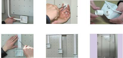 每座實(shí)訓(xùn)單體墻有對(duì)稱(chēng)的兩個(gè)墻面,每個(gè)墻面布有2道橫向和縱向凹槽,凹槽深度50mm,寬度100mm,下部橫向凹槽距離地面300mm。 鋼面板表面設(shè)有60X60毫米的安裝孔用來(lái)安裝各種線(xiàn)管、插座、線(xiàn)槽等,實(shí)訓(xùn)過(guò)程只需要采用螺絲安裝保證無(wú)塵操作。模擬墻外部平整美觀(guān),表面看不見(jiàn)墻體安裝螺絲或鉚釘。
